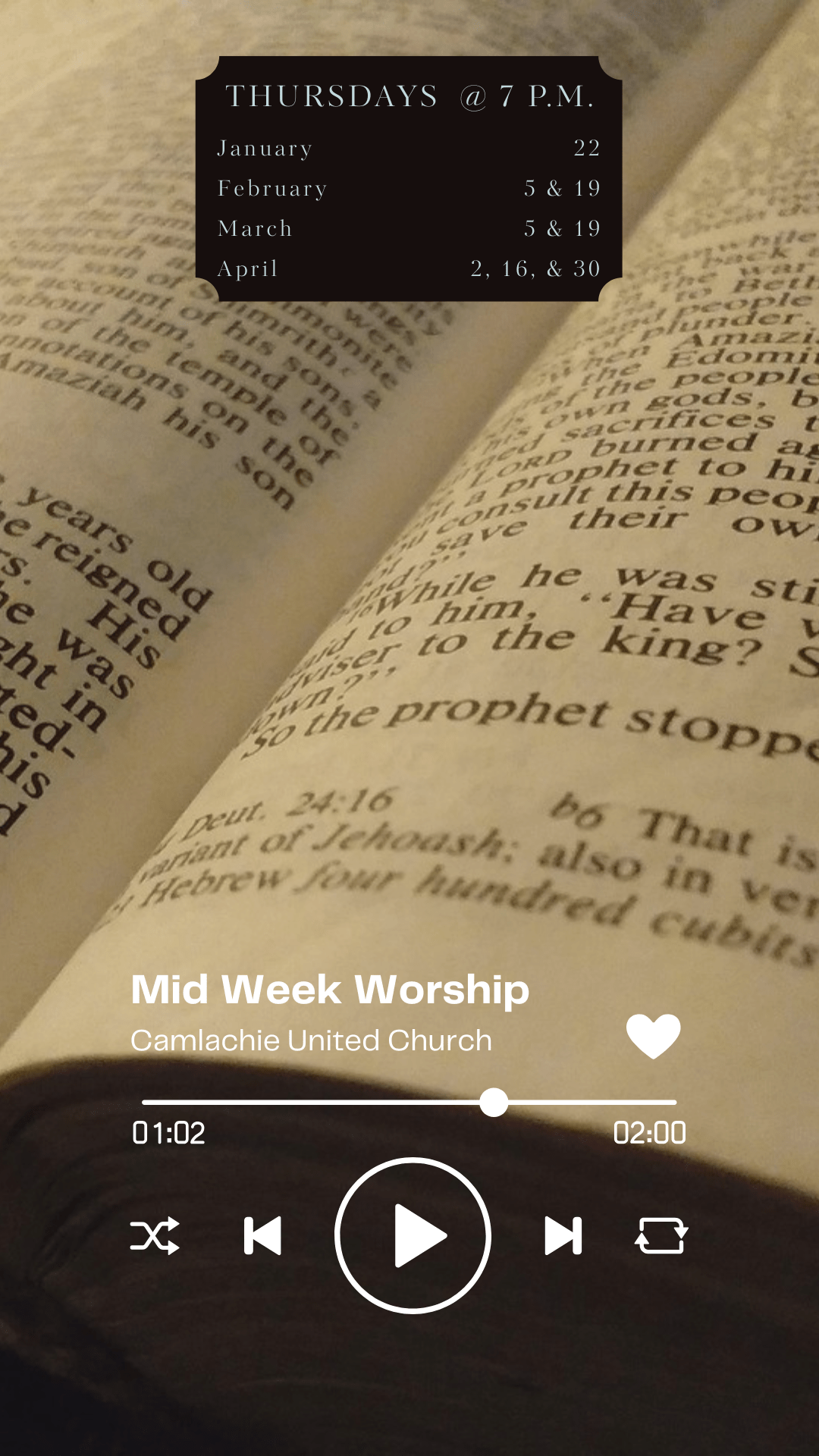 Church on Wednesday at 7 p.m. & Sunday at 10 a.m.